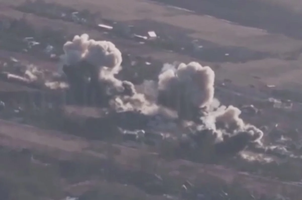 Ранее были опубликованы кадры уничтожения пункта временной дислокации боевиков 57-й мотопехотной бригады ВСУ в районе села Караичное под Волчанском в Харьковской области. Сообщалось, что для поражения обнаруженного места скопления военнослужащих противника были применены фугасные бомбы ФАБ-250.