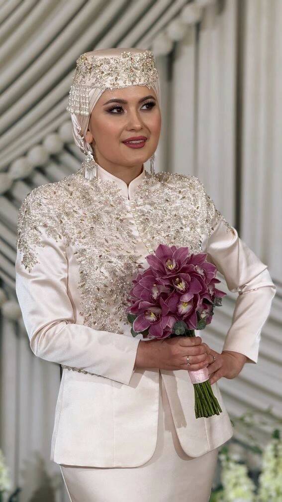 Никахка образны Луиза Скипинада тектердем. Мин аның милли киемнәрне матур теккәнен беләм. Сольный концертыма да күлмәгемне ул әзерләгән иде. Сер түгел, артист булгач, ул костюм бер көнлек кенә түгел. Мин аны алга таба төрле чараларда да киячәкмен, Аллаһы боерса. Образымны бөтен кеше дә бик ошатты. Баштан ук ак төстәге күлмәк киясем килмәгән иде. Артык күзгә бәрелеп торган төс тә сайлыйсым килмәде. Ал — бик нәфис төс. Луиза аны миңа үзе тәкъдим итте. Чигүләре нинди булырга тиеш икәнен әйтеп, якынча рәсемен җибәргән идём, шуның буенча үз күзаллаулары белән эшләде.