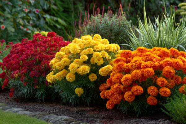 Их главная суперсила — фитосанитарные свойства: они очищают почву от нематод и отпугивают многих вредителей, защищая соседние растения. После посадки их нужно лишь изредка поливать, если стоит сильная засуха, и удалять увядшие соцветия для поддержания декоративности. Они образуют аккуратные шаровидные кустики высотой 20–40 см, идеальные для бордюров, контейнеров и заполнения пустот на клумбе.