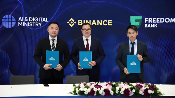 «Министерство искусственного интеллекта и цифрового развития РК, компания «Binance» и АО «Фридом Банк Казахстан» подписали трёхсторонний меморандум о сотрудничестве, направленный на развитие цифровых финансовых технологий и криптовалютных решений в Казахстане», — говорится в опубликованном сообщении.