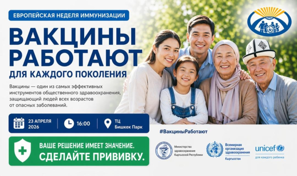 Сегодня в Бишкеке пройдёт информационно-просветительская акция, приуроченная к Европейской неделе иммунизации. Об этом сообщает прессс-служба Минздрава.