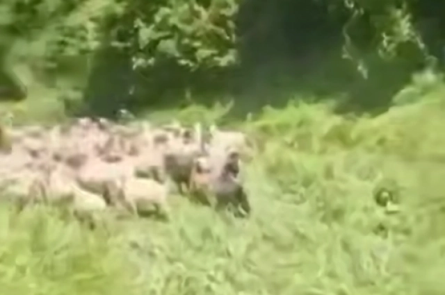В Дагестане пастух в одиночку, только вооружившись палкой и заручившись помощью собак, прогнал медведя от стада овец.