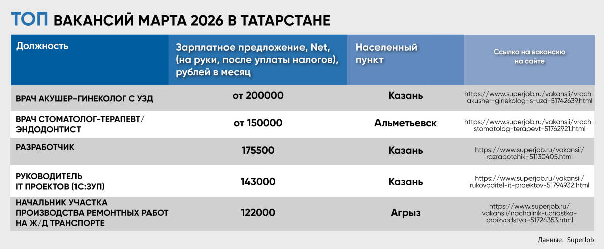 «В феврале 2026 года медианная предлагаемая зарплата в Татарстане составила 80 тыс. рублей. За год она выросла на 11,5%», – заметили в пресс-службе hh.ru.