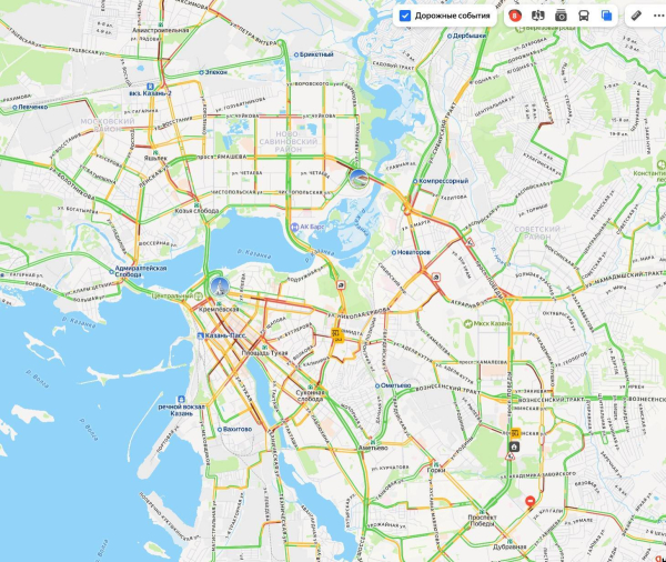 Движение автомобильного транспорта осложнено на проспектах Ямашева и Победы, на Сибирском и Оренбургском трактах, на улицах Академика Арбузова, Николая Ершова и Баки Урманче, а также в центре столицы Татарстана.
