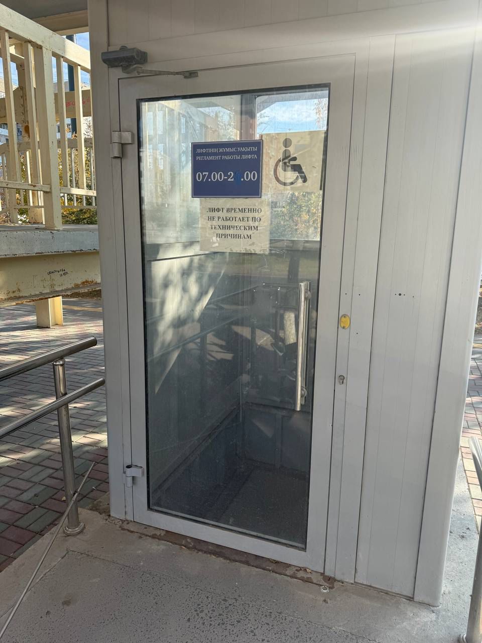 В Атырау жители жалуются на неисправный лифт на пешеходном мосту возле остановки «Академия».